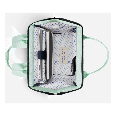 Ce sac est accompagné de 2 pochettes interchangeables : vert et bleu/violet