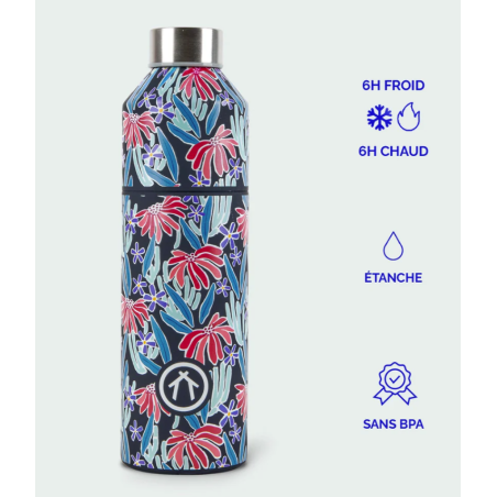 La gourde 630ml rentre dans les sacs à dos (10L, 18L, 23L et 26L), la poche gourde du Duffle Explorer et les porte-gourdes.