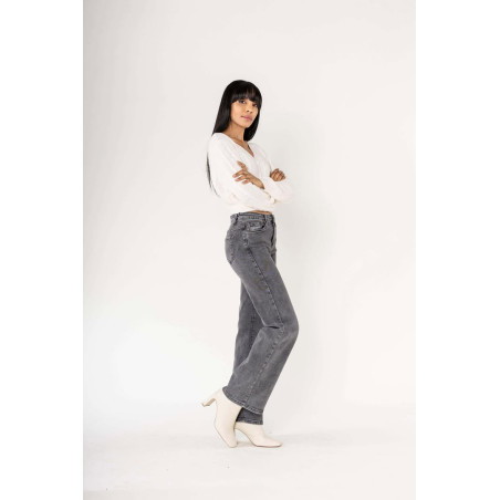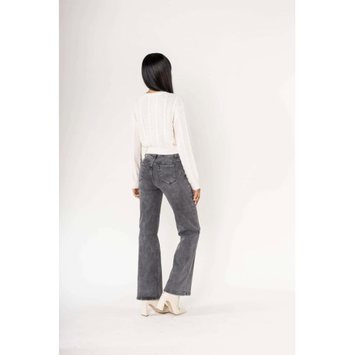 Jeans Flare taille haute avec poches, bouton et fermeture éclair, très confortable