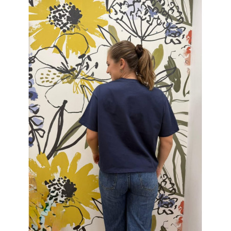 tee shirt coupe oversize de couleur bleu marine, très agréable à porter