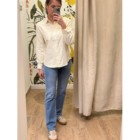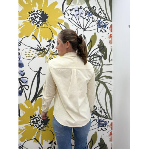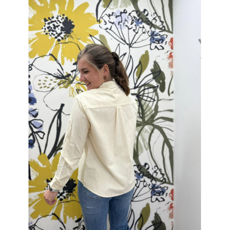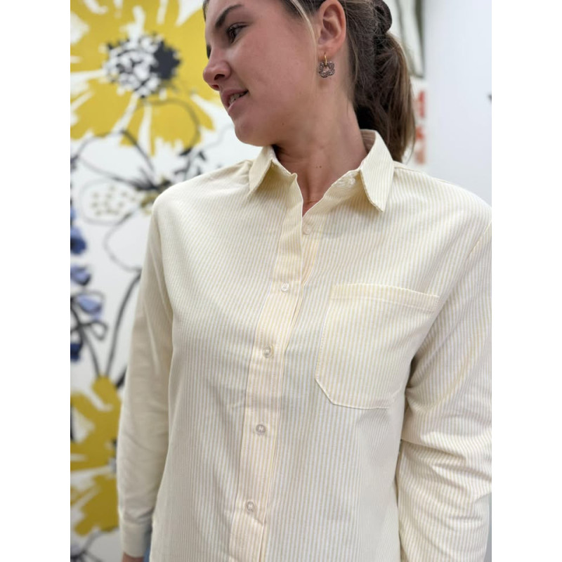 Chemisier manches longues rayé jaune avec une poche plaquée sur le côté gauche, très tendance