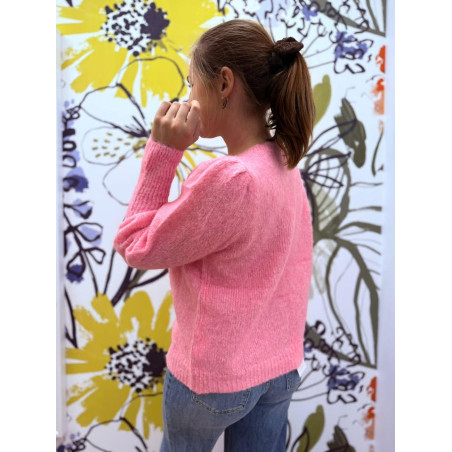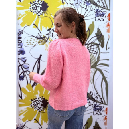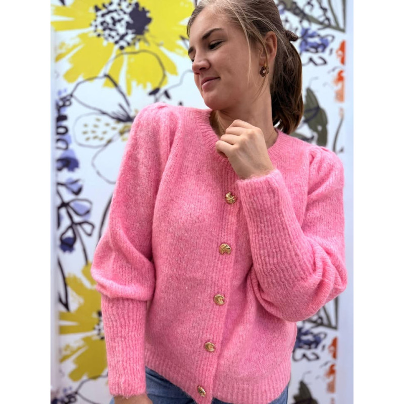 Gilet manches longues rose avec boutons dorés