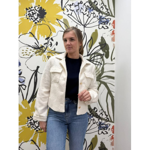 Veste manches longues avec boutons de haut en bas de couleur or, deux poches plaquées à l'avant avec boutons ors pour les fermer