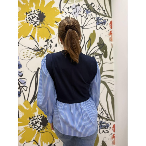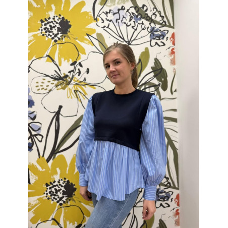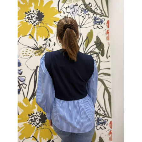 Blouse 2 en 1 effet pull sans manches et chemisier rayé, manches bouffantes