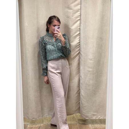 Pantalon fluide effet tailleur avec bouton et fermeture éclair, bande élastiquée sur la taille arrière