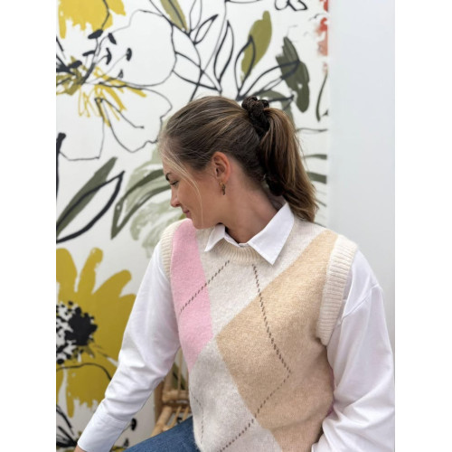 Pull sans manches Jacquard grande tendance de cette année, à poser seule ou avec un chemisier en dessous