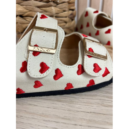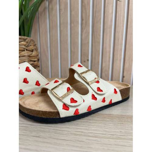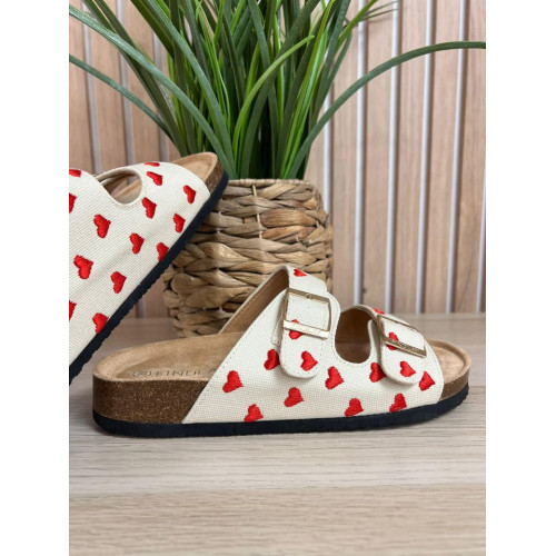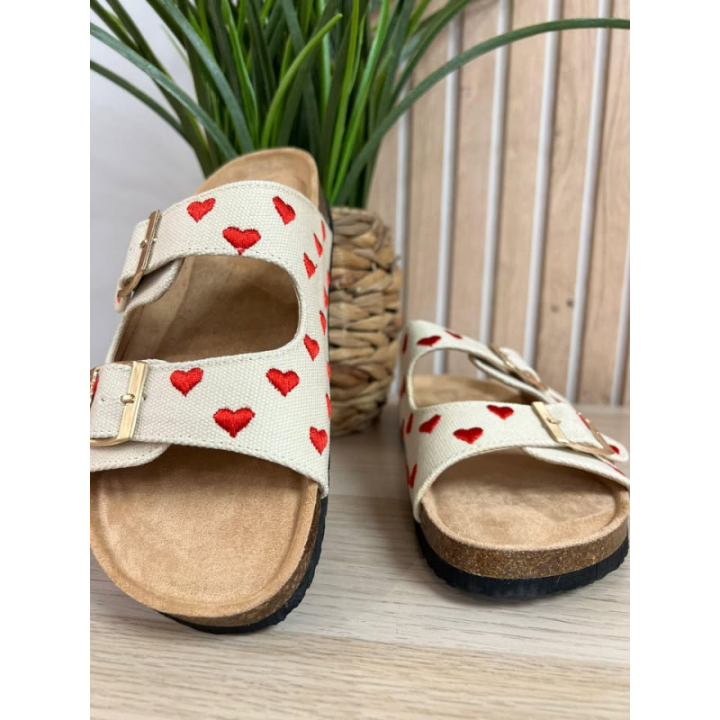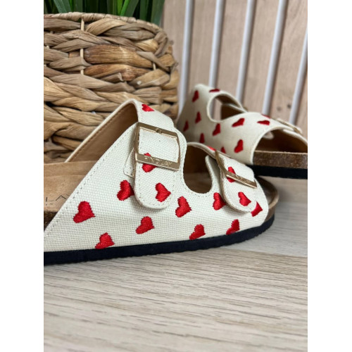 Mules beige avec coeurs brodés