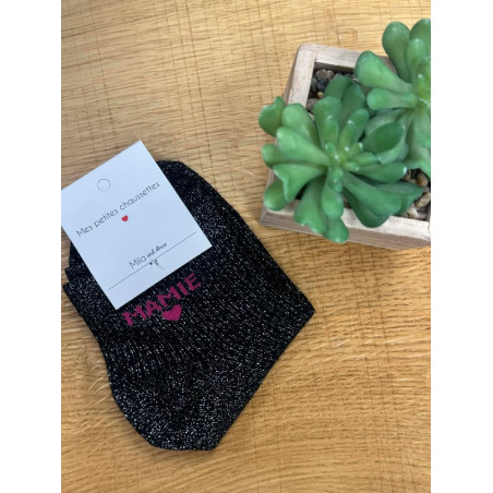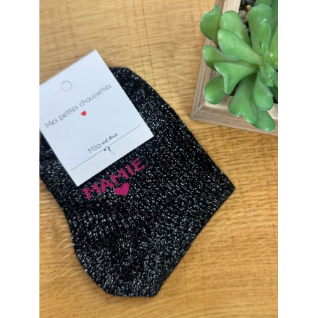 Chaussettes à paillettes noire écriture rose