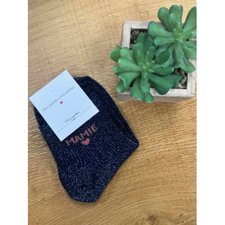 Chaussettes à paillettes bleu marine écriture rose