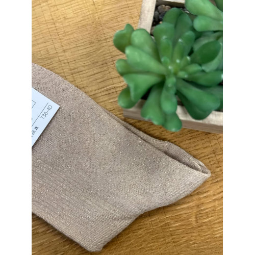 Chaussettes à paillettes beige avec écriture MAMIE D'AMOUR en fushia