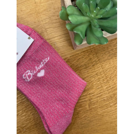 Chaussettes à paillettes rose avec écriture BICHETTE en blanc