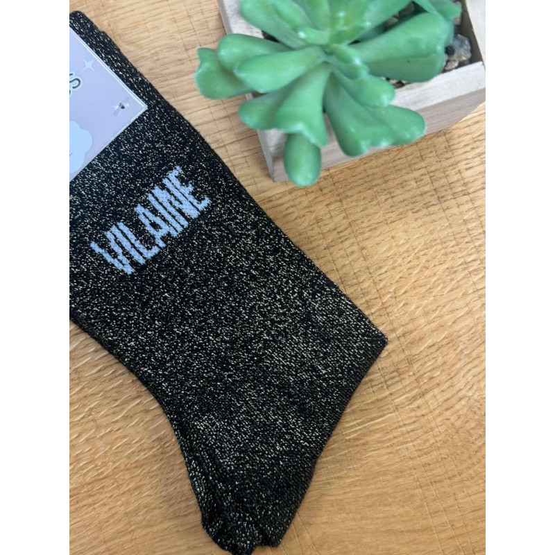 Chaussettes à paillettes noire écriture vilaine