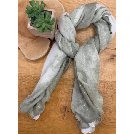 Foulard aux dégradés vert et blanc avec petits points dorés