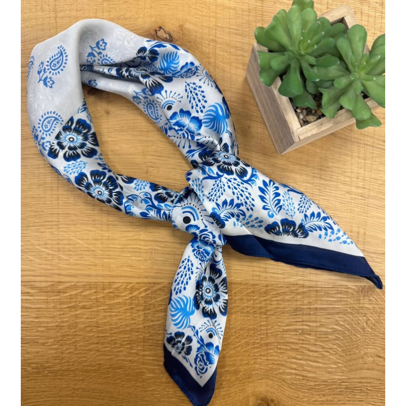 Carré de soie dans les tons bleus