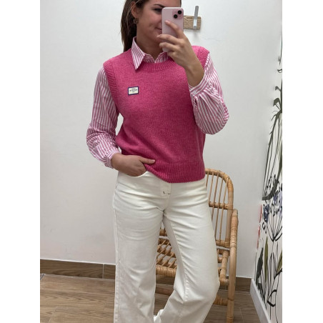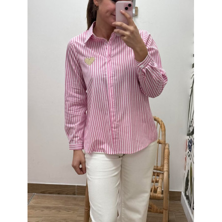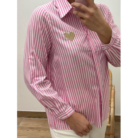 Chemisier à rayures avec broderie de coeur doré sur l'avant, boutonnière pour remonter la manche au 3/4