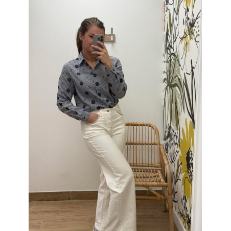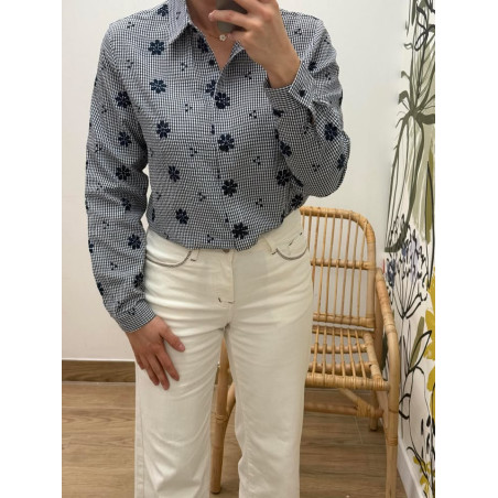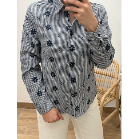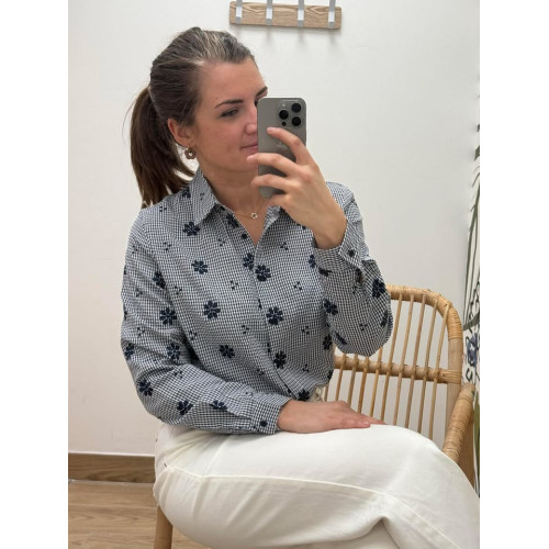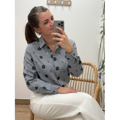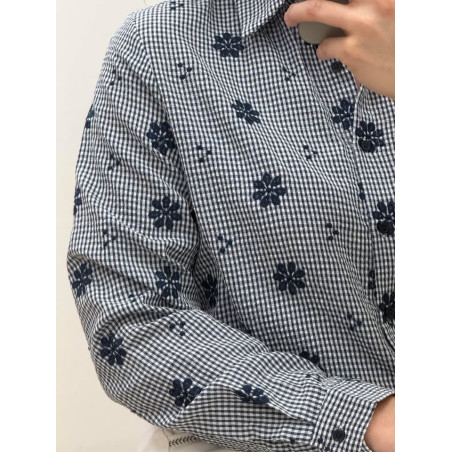 Chemisier vichy effet gaufré avec fleurs brodés sur tout le chemisier