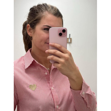 Chemisier à rayures rouge & blanc avec broderie d'un coeur doré sur le devant