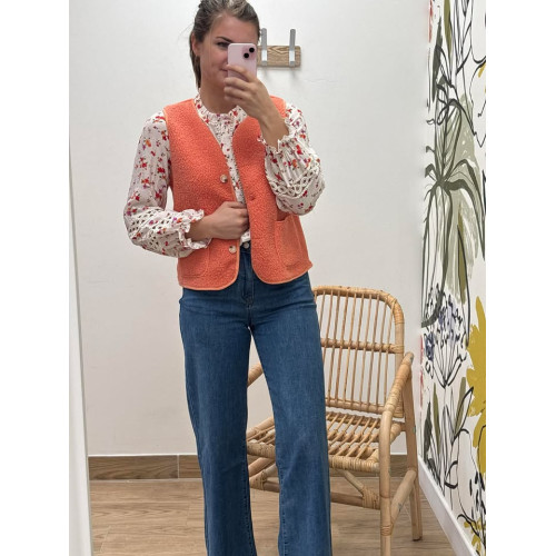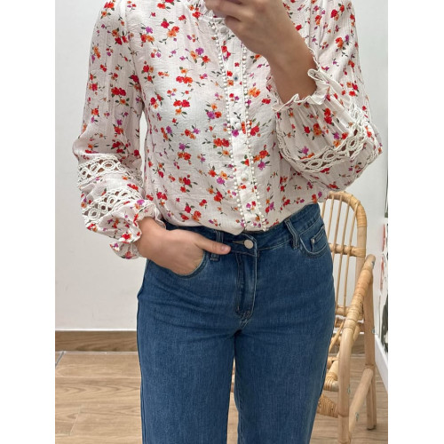 Blouse florale avec détails ajouré au niveau des poignets, boutons de haut en bas