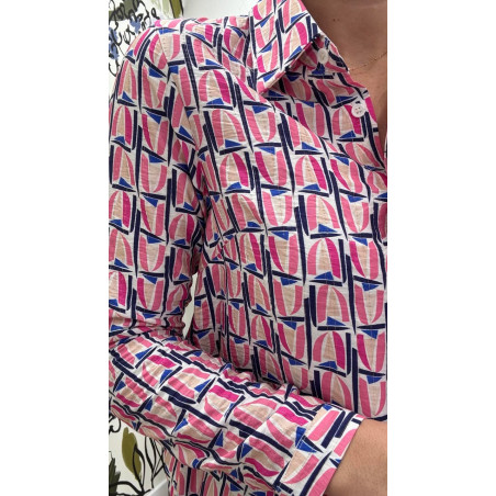 Chemisier coloré avec boutonnière pour remonter en 3/4, liseré doré