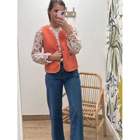 Gilet sans manches effet bouclette orange avec poches ainsi que boutons