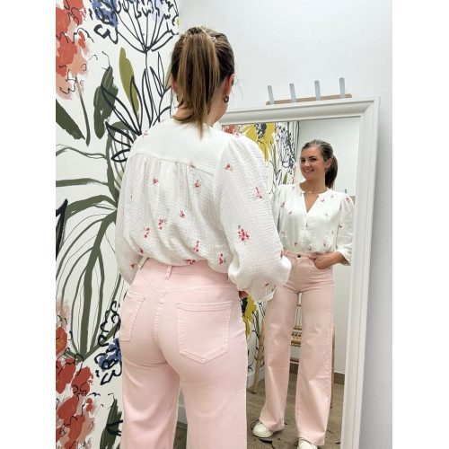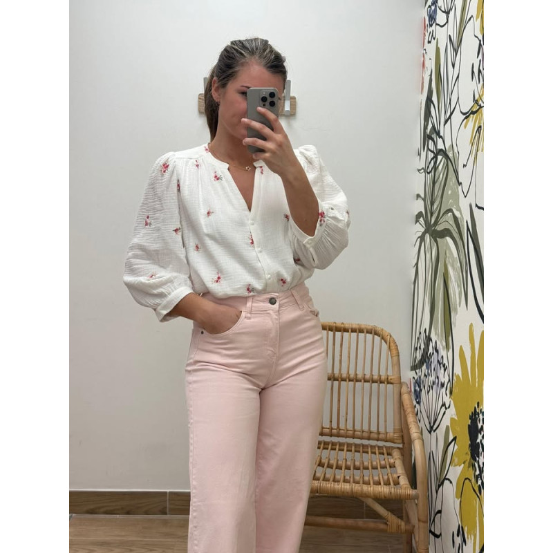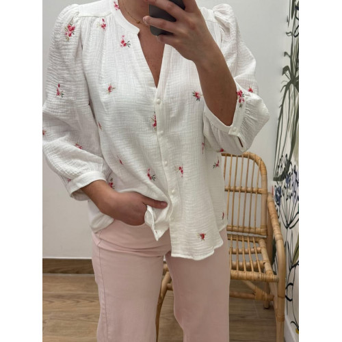 Blouse en gaz de coton avec broderies, boutons sur l'avant