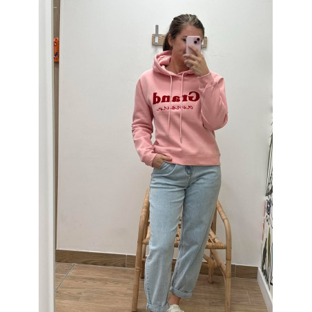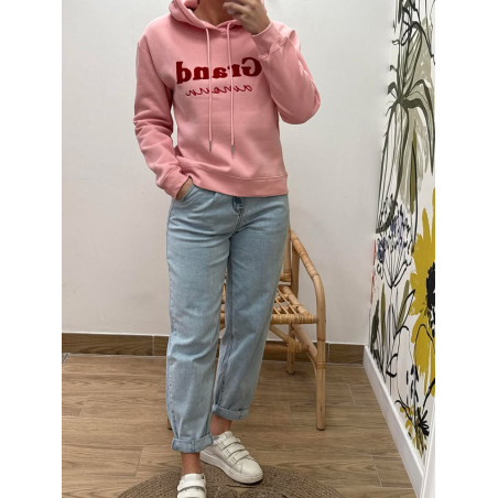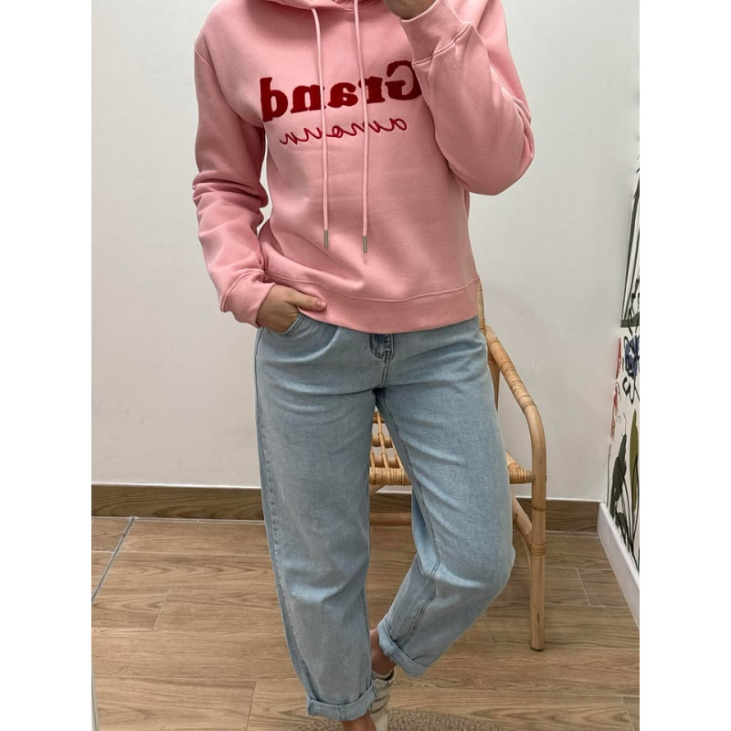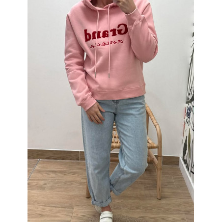 Sweat à capuche avec inscription sur le devant, polaire à l'intérieur