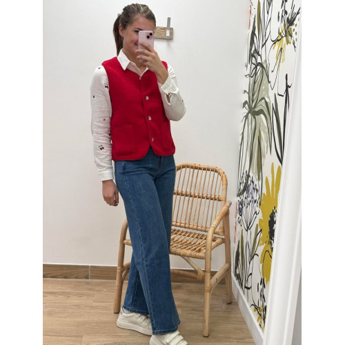 Jeans taille haute coupe wide leg avec détails d'un coeur brodé sur la poche arrière