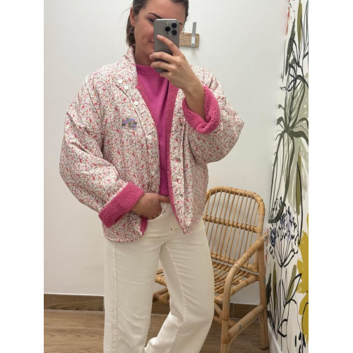 Veste réversible côté bouclette ainsi que tissus liberty