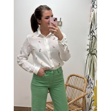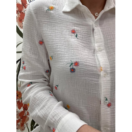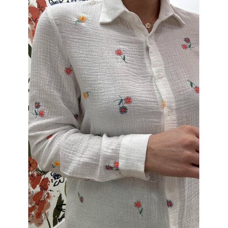 Chemisier en gaz de coton avec broderies de fleurs colorés