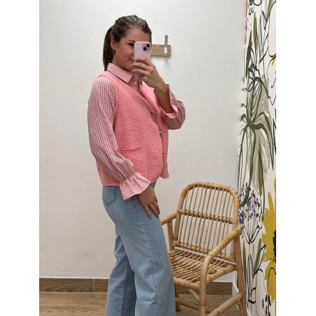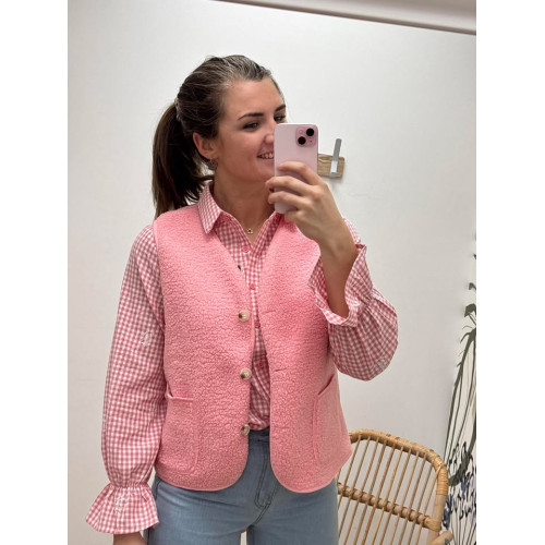 Gilet sans manches effet bouclette rose avec poches ainsi que boutons