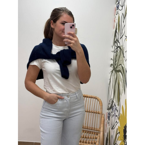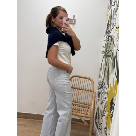 Jeans taille haute wide leg è rayures, petit coeur brodé sur la poche arrière