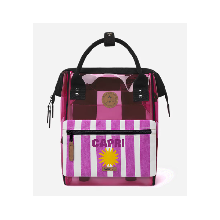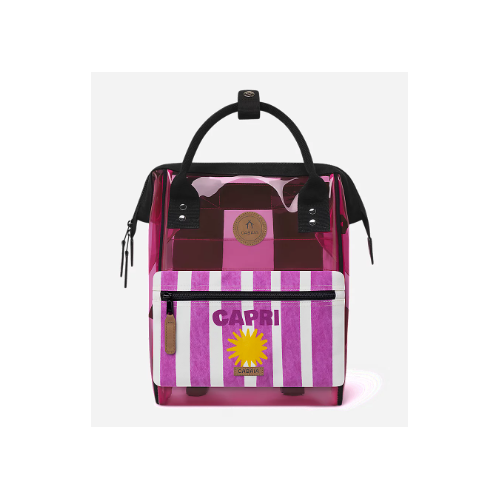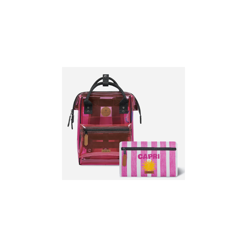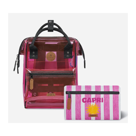 Ce sac est accompagné de 2 pochettes XS interchangeables : transparente (Sorrento) et motif ( Piazza)