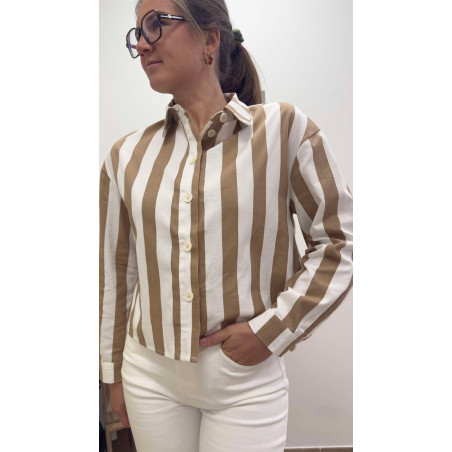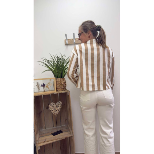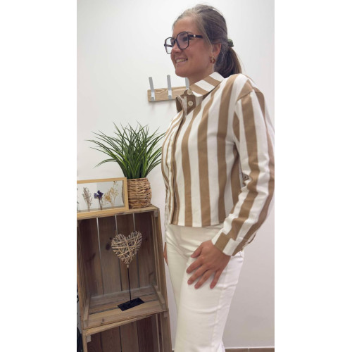 Chemisier court à rayures avec boutons de haut en bas