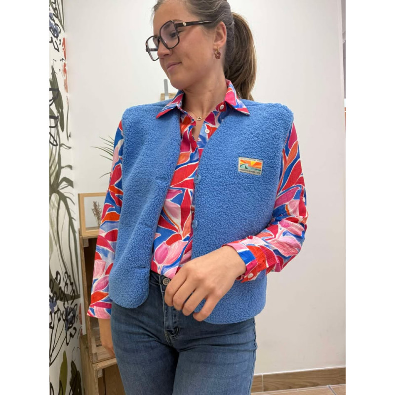 Gilet sans manches bouclette avec écusson brodé sur le devant