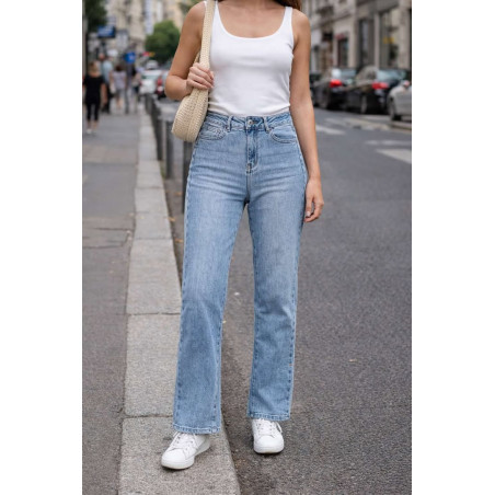 Jeans Wide Leg taille haute avec bouton et fermeture éclair