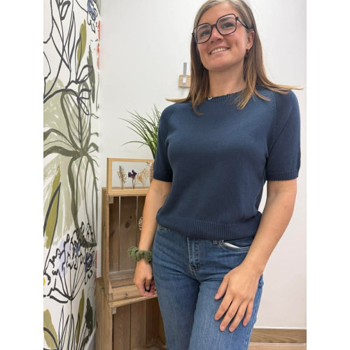 Pull manches courtes en maille légère, col rond