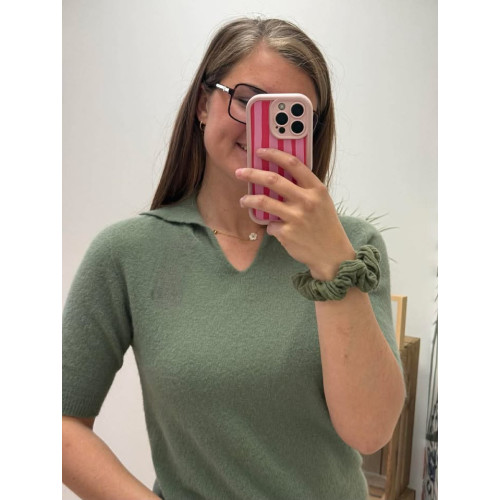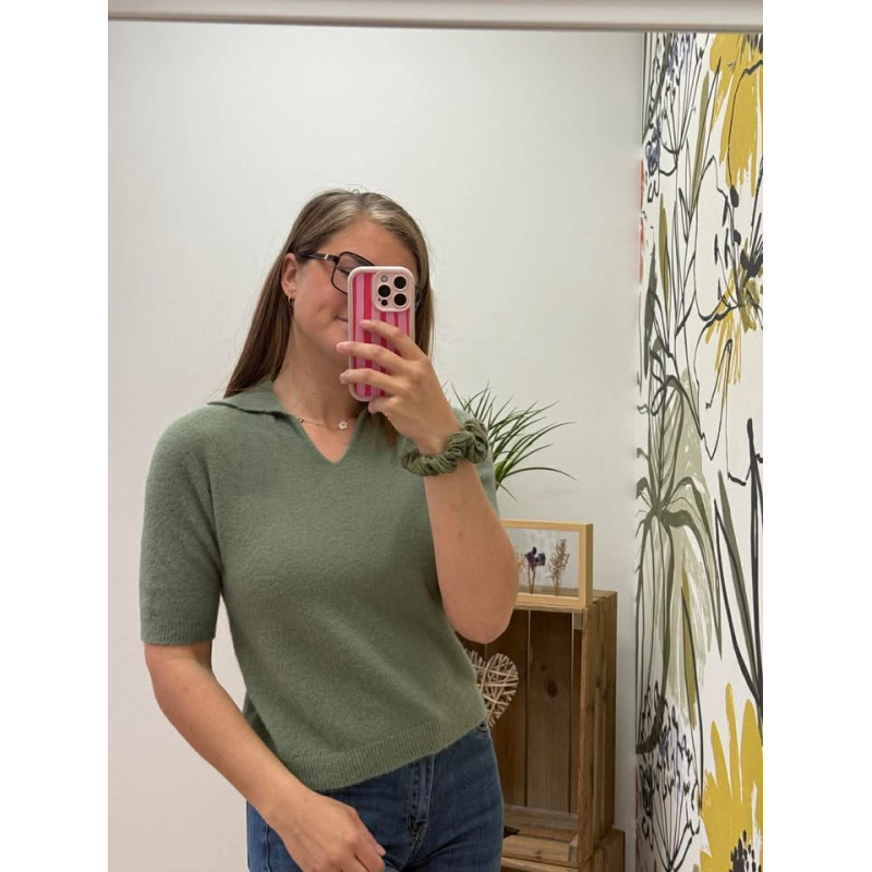 Pull manches courtes avec petit col, matière douce