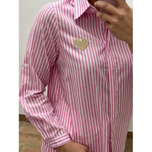 Chemisier à rayures avec broderie de coeur doré sur l'avant, boutonnière pour remonter la manche au 3/4