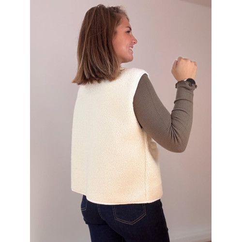 Gilet sans manches bi matière peau de pêche et bouclettes