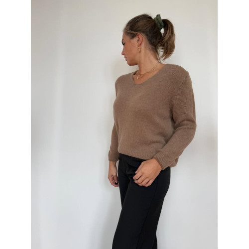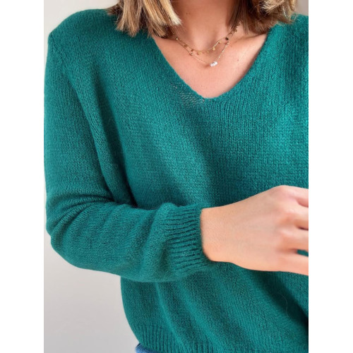 Pull col V au détails vichy sur le coeur ainsi qu'aux manches