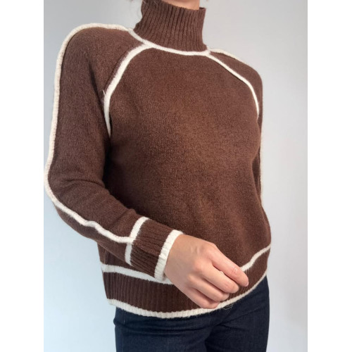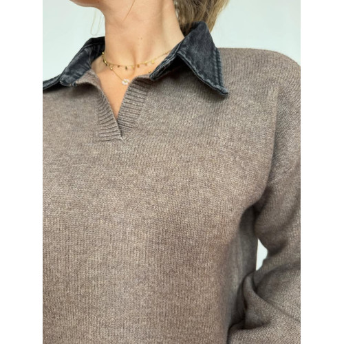 Pull bi matière avec détails vichy au col ainsi qu'aux manches