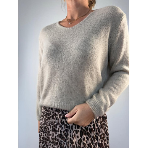Pull beige aux détails léopard à la poche ainsi qu'aux manches & boutons sur l'épaule