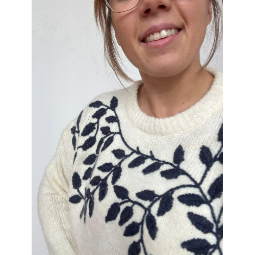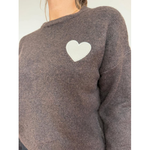 Pull col rond avec inscription au dos ainsi qu'un coeur brodé sur le devant