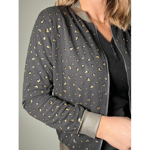 Bombers à fermeture éclair, détails dorés au col et aux manches, sans poches, doublé