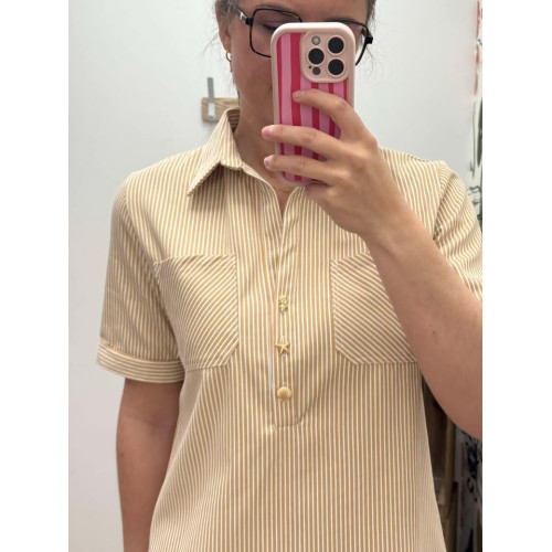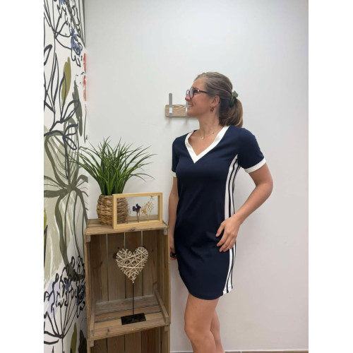 robe courte esmee pr25Robe coupe droite col V avec liseré doré