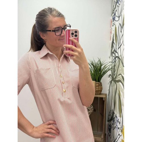 robe courte barbara rouge pr26Robe courte en jeans rayée avec boutons