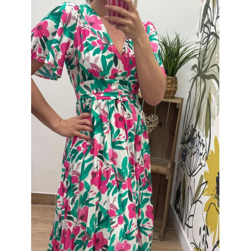robe longue aesme et25Robe longue col V manches courtes smokée dans le dos