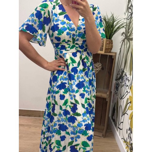 robe courte christelle bleu...robe longue en col V avec doublure à l'intérieur