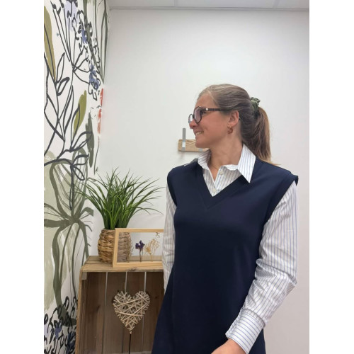 robe tania bleu marine prRobe courte fluide bleu marine en col V avec poches de chaque côté à l'avant