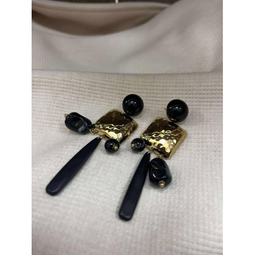 Boucles d'oreilles en acier inoxydable doré et noir avec fermoir